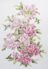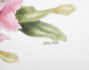 LOT 33 Watercolour signed Caren Heine, 28 x 20" "Rhodo & Hammers". Estimate: $100 - $150 Auction Date: Tuesday, April 28 2026 at 4:00 PM