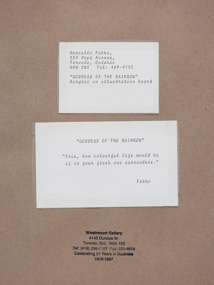 LOT 108 Acrylic signed Febbo, 11 1/2 x 11 1/2" "Goddess of the Rainbow". Estimate: $150 - $300 Auction Date: Tuesday, April 28 2026 at 4:00 PM
