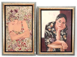 LOT 31 Pair of Oil on Canvas signed Susan Mitchell, 24 x 14" "Portrait". Estimate: $100 - $200 Auction Date: Tuesday, April 28 2026 at 4:00 PM
