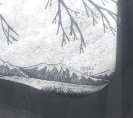 Artwork signed Masse 2001, 11 x 4" "Owl".