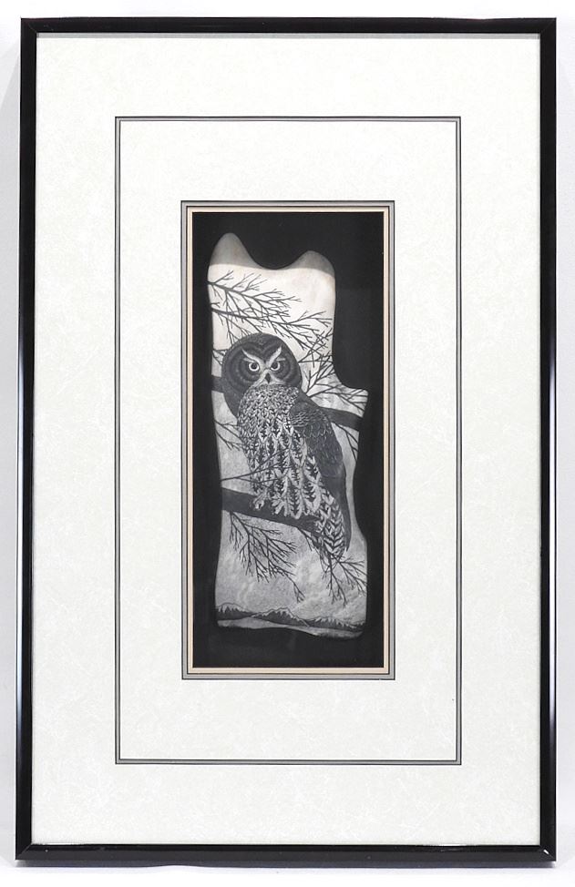 LOT 101 Artwork signed Masse 2001, 11 x 4" "Owl". Estimate: $100 - $150 Auction Date: Tuesday, April 28 2026 at 4:00 PM