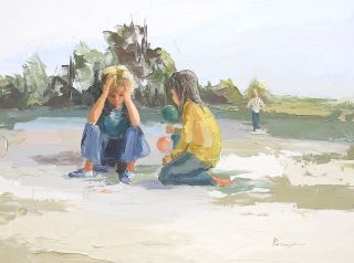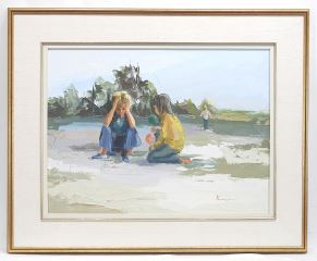 LOT 117 Oil on Board (V. Joan) Pearson, 18 x 24" "Children Playing". Estimate: $100 - $150 Auction Date: Tuesday, April 28 2026 at 4:00 PM