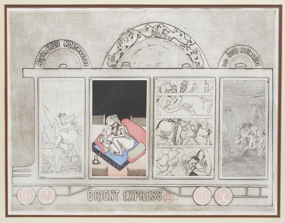 LOT 43 Three Colour Etchings signed (Noboru) Sawaii, 18 x 23 3/4" "Orient Express" Triptych. Estimate: $500 - $1,000 Auction Date: Tuesday, April 28 2026 at 4:00 PM