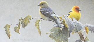 Pair of Acrylic on Board signed W. Allan Hancock, 12 x 6" "Crowned Sparrow" & "Tanager".