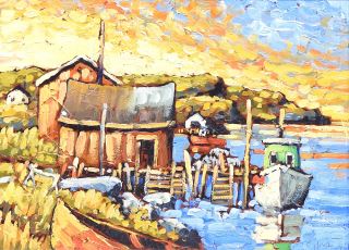 Oil on Board signed (Rod) Charlesworth, 12 x 16" "Last Light Nfld".