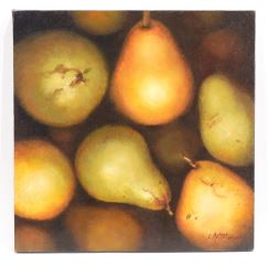 Oil on Canvas signed C. (Catherine) Moffat, SFCA, 16 x 16" "Pears".
