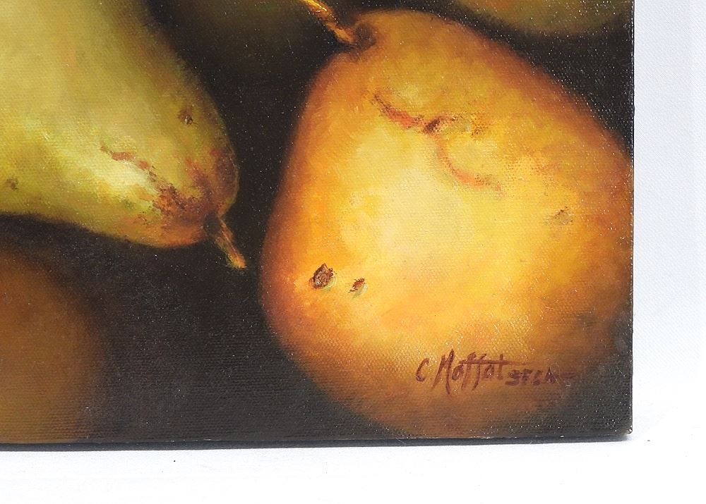 Oil on Canvas signed C. (Catherine) Moffat, SFCA, 16 x 16" "Pears".