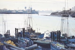 Watercolour signed B. (Brian) Travers-Smith, 13 7/8 x 10 1/2" "Victoria Harbour".