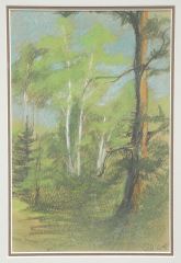 LOT 76 Pastel on Paper Monogrammed G.A.McK (Georgina A. McKay), 8 3/8 x 5 1/2", "Trees Prince Albert, Sask Estimate: $80 - $100 Auction Date: Tuesday, April 28 2026 at 4:00 PM