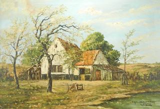 Oil on Canvas signed R. Delboue, 27 3/4 x 39 1/4", "Goxyde (Maison de Pechour) (frame noted).