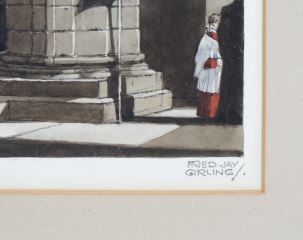 LOT 164 Watercolour signed Fred Jay Girling, 8 1/4 x 7" "Hexham Abbey". Estimate: $80 - $120 Auction Date: Tuesday, April 28 2026 at 4:00 PM