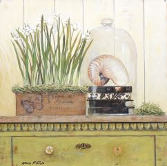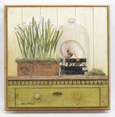 Mixed Media signed Arnie R. Fisk, 19 1/2 x 19 1/2" "Fleuriste".