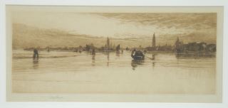 Artist Proof Etching signed Wilfred Ball, 7 1/4 x 17 3/4", "Venice From The Lido".