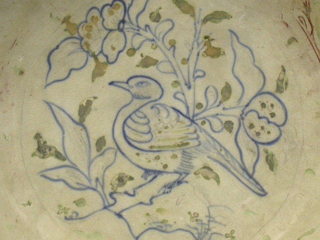 LOT 793 Large blue and white dish with enamel, bird on branch decoration. Estimate: $600 - $800 Auction Date: Tuesday, July 22 2003 at 7:30 PM