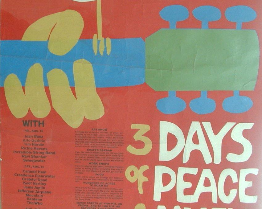LOT 957 Concert poster,"Woodstock, Wallkill N.Y., Aug. 15, 16, 17", 1st. print, 32" x 21 5/8". Estimate: $300 - $500 Sold For: $425 Auction Date: Tuesday, July 22 2003 at 7:30 PM