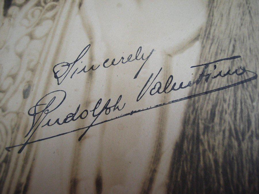 B and W photograph, "Sincerely Rudolph Valentino" (in costume), 9 1/2" x 7 1/2".
