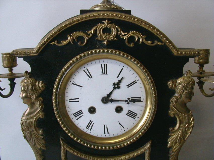 LOT 636 Three piece garniture clock set, wood with black lacquer and brass mounts. Estimate: $300 - $500 Sold For: $450 Auction Date: Tuesday, June 10 2003 at 7:00 PM