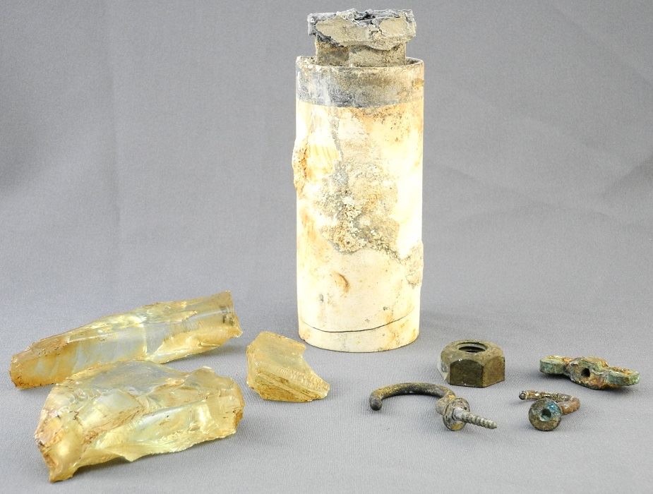 LOT 116 Battery from under wheelhouse, lot of ship's hardware and porthole glassware. Estimate: $125 - $175 Sold For: $40 Auction Date: Tuesday, May 30 2017 at 7:00 PM