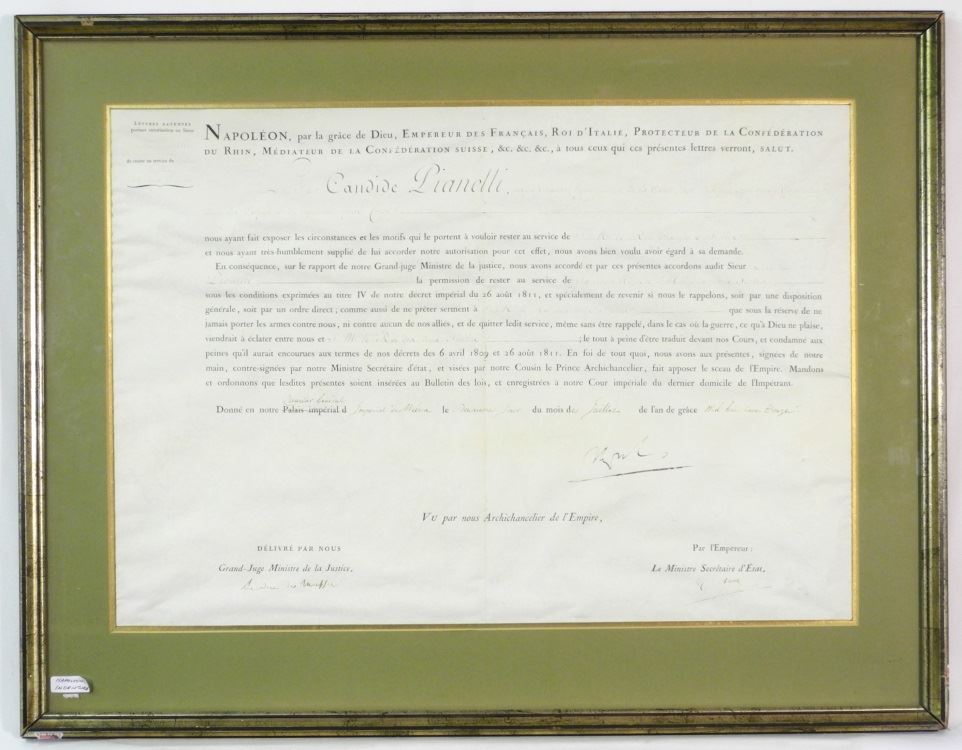 Framed indenture signed Napoleon, giving authority for Captain Candide Pianelli.