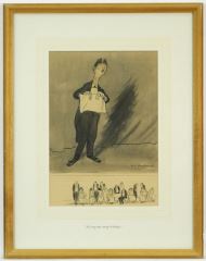Watercolour & ink drawing signed H. M.Bateman, 12 1/2"x8 1/2","I'll sing three songs of Araby".
