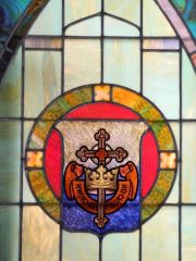 LOT 237 Pair of large stained and leaded glass windows approx. 3' tall. Estimate: $400 - $600 Sold For: $300 Auction Date: Tuesday, May 30 2017 at 7:00 PM