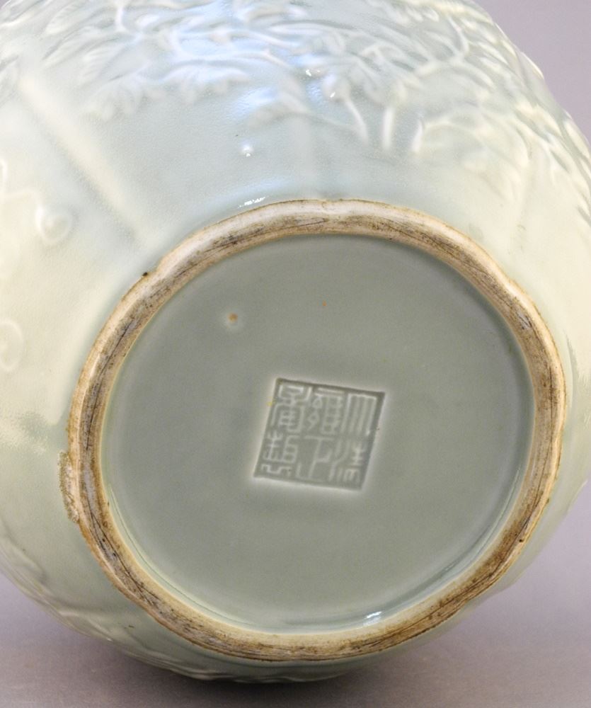 LOT 204 Moulded Celadon "Gourd Vase" with Yong Zheng Mark, 9 1/2" High. Estimate: $500 - $1,000 Sold For: $625 Auction Date: Tuesday, April 26 2022 at 6:00 PM