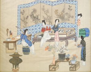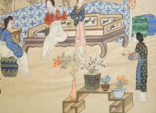 Chinese Ink & Colour on Silk of a Musical Gathering, 11 7/8" x 14 3/8"
