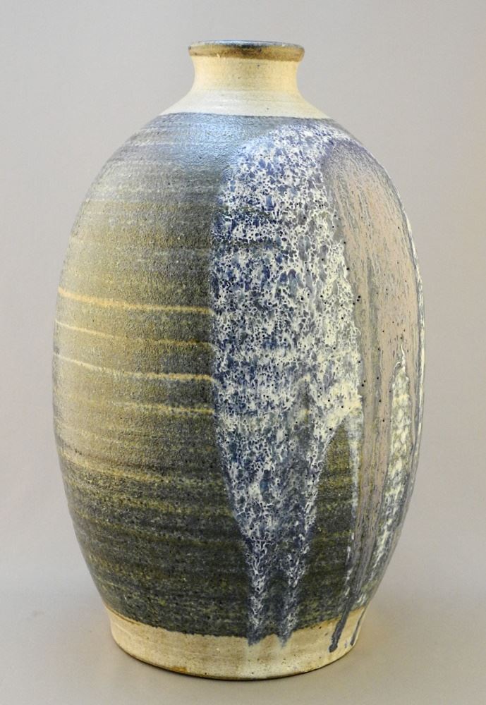 LOT 82 Stoneware Vase Monogrammed TK (Thomas Kakinuma), 13 1/4" High. - Estimate: $300 - $500 Sold For: $825 Auction Date: Tuesday, April 26 2022 at 6:00 PM