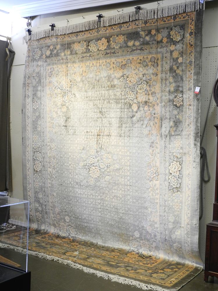 LOT 188 Hand Knotted Silk Carpet, Approximately 12'5" x 9'. Estimate: $1,000 - $2,000 Sold For: $3,000 Auction Date: Tuesday, April 26 2022 at 6:00 PM