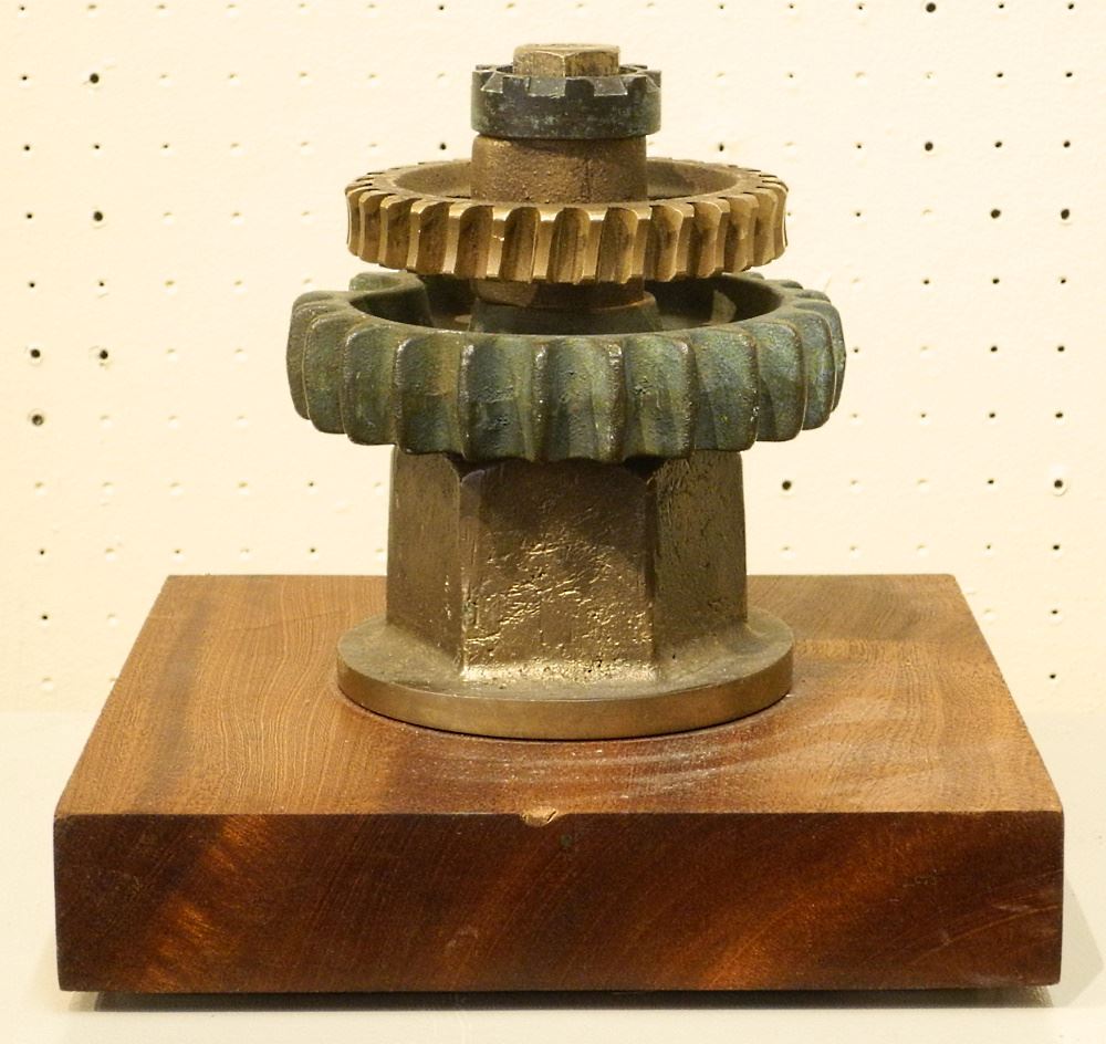 LOT 124 Bronze Rotary Assembly on Mahogany Plinth Signed Darcy (Gould) 2017, 9 x 9 5/8 x 9 3/4". Estimate: $100 - $200 Sold For: $50 Auction Date: Tuesday, June 20 2023 at 4:00 PM