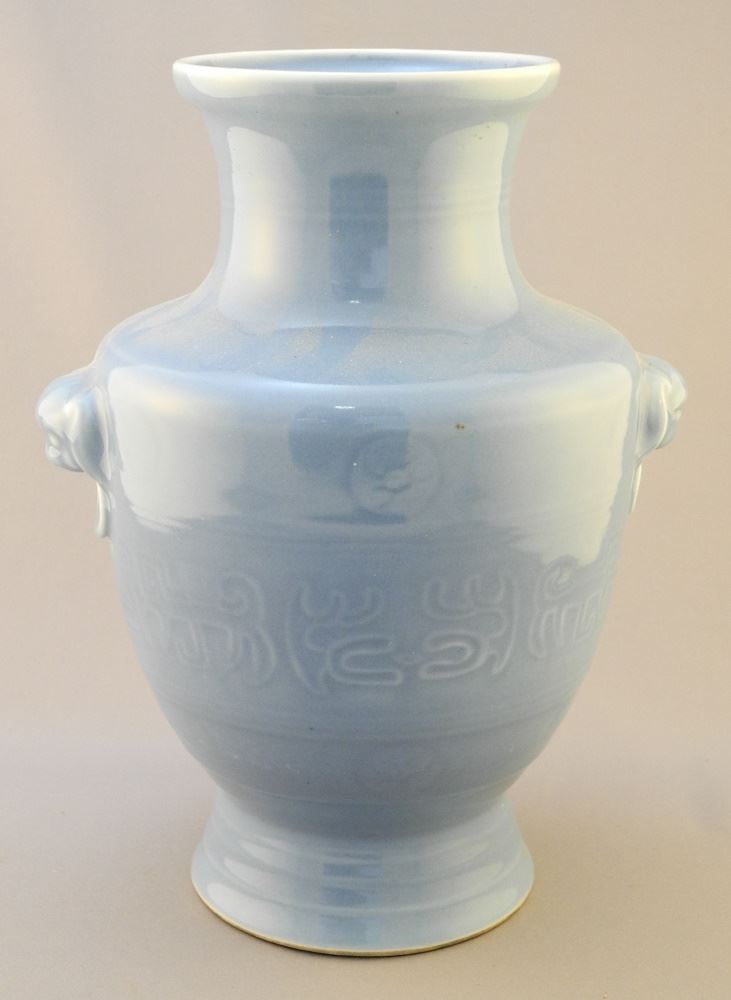 Chinese Blue Glazed Porcelain Vase, Qianlong Mark, 10 7/8"L.