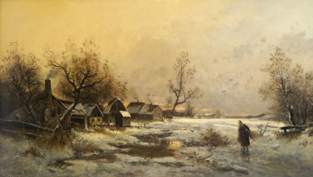 LOT 2 Oil on Canvas signed Ad Kauffmann, 24" x 42 1/2", "Pastoral Scene with Figure". Estimate: $1,750 - $2,500 Auction Date: Tuesday, June 20 2023 at 4:00 PM
