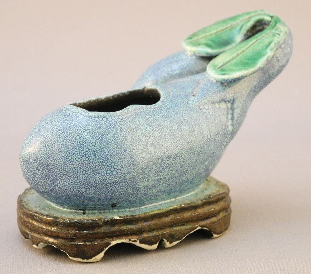 Chinese Qing Robin's Egg Blue "Gourd" Brush Washer, 2 1/8 x 3 1/2 x 1 1/2".