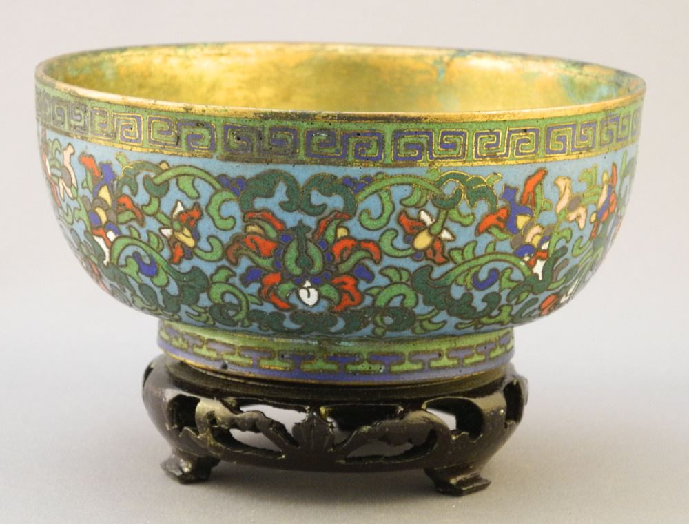 LOT 57 Republican Chinese Cloisonne Bowl with Stand in Fitted Case, 2 1/4" x 4 7/8" d. Estimate: $500 - $600 Auction Date: Tuesday, June 20 2023 at 4:00 PM