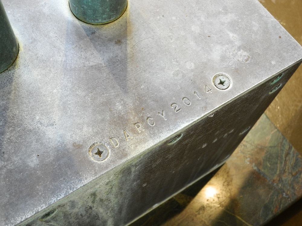 Bronze & Copper Sculpture on Marble Base Signed Darcy (Gould) 2014, 80 1/2 x 18 1/2 x 18 1/2"