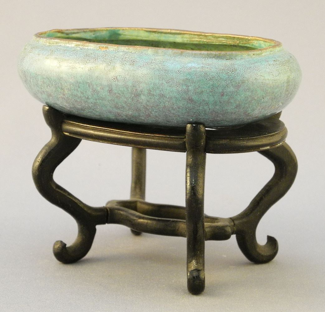 LOT 91 Chinese Qing Robin's Egg Blue Brush Washer with Stand, 1 1/8 x 4 1/8 x 2 5/8" Estimate: $200 - $300 Auction Date: Tuesday, June 20 2023 at 4:00 PM