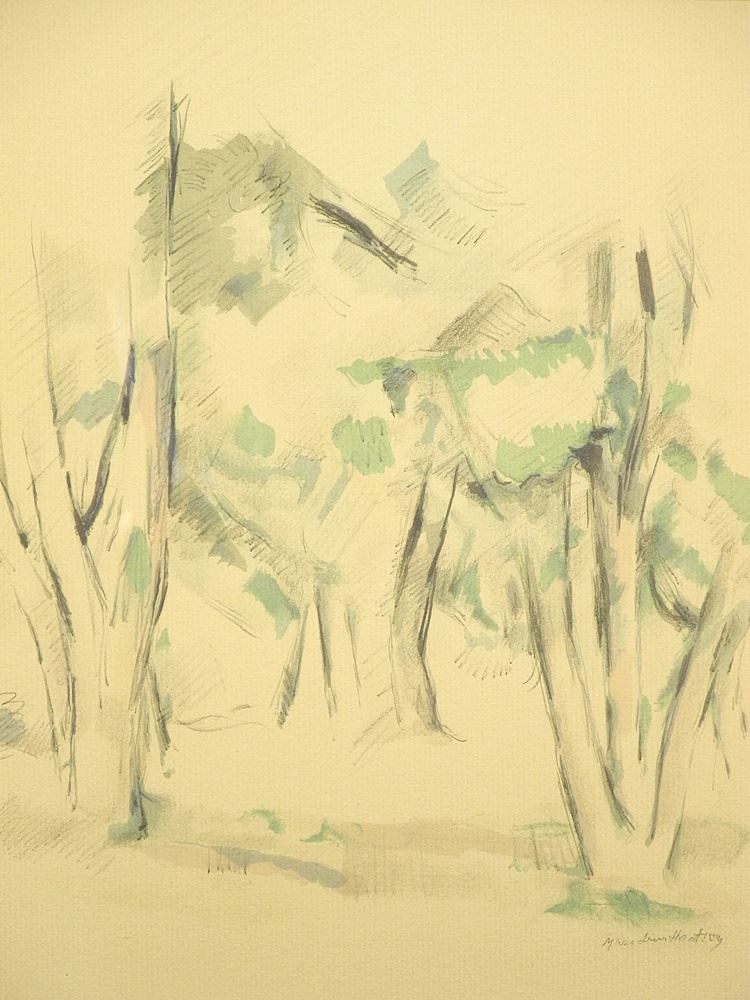 Watercolour signed Marsden Hartley, 11 3/4" x 9", "Two Trees".