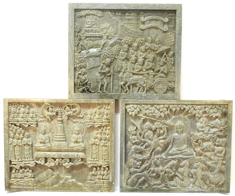 LOT 100 3 South Asian Carved Marble Panels, 11" x 13" x 1 1/4". Estimate: $250 - $400 Sold For: $250 Auction Date: Tuesday, June 25 2024 at 4:00 PM