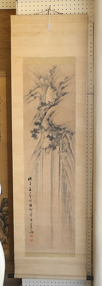 Ink Scroll Attributed to Shoyu, Sight 48" x 13", "Waterfall".