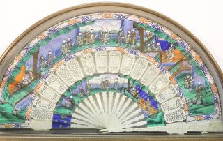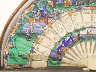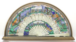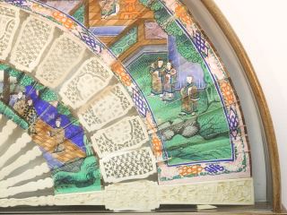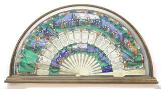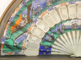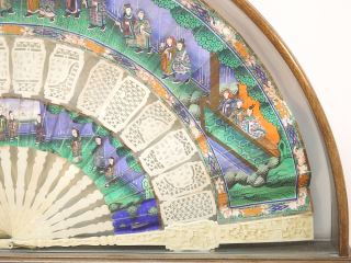 Mid 19th C. Cantonese Fan in Free Standing Shadow Box, 12 1/2" x 24" x 3".