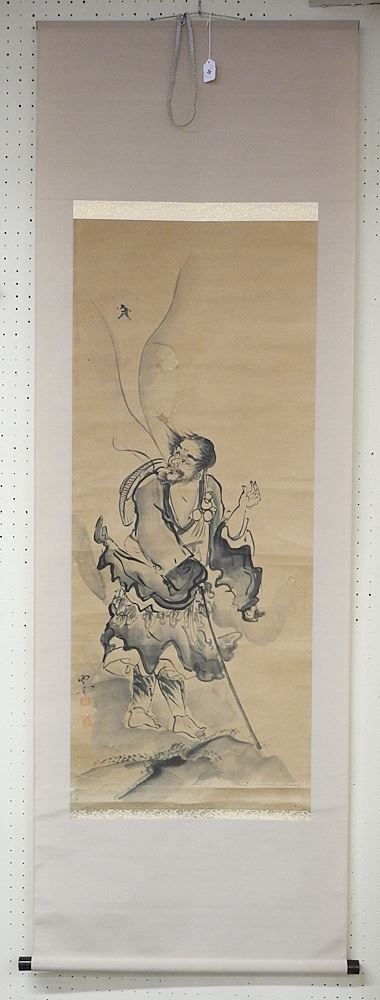 Ink Scroll Painting of Li Tieguai, 45 1/2" x 18 3/4" (restoration noted).