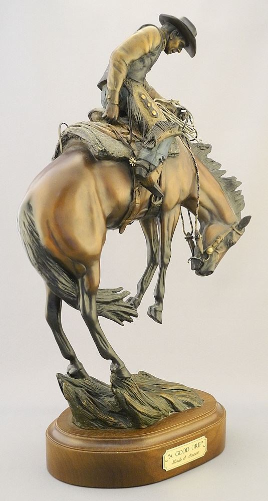 LOT 126 Bronze Sculpture signed Linda G. Stewart, 19" x 12" x 5", "A Good Grip" #35/35. Estimate: $300 - $500 Sold For: $450 Auction Date: Tuesday, June 25 2024 at 4:00 PM