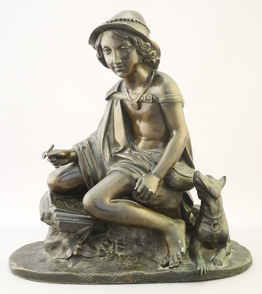 LOT 28 Bronze "Shepherd Boy & His Dog", by Charles Cumberworth, Possibly 1840, 9 3/4"H. Estimate: $300 - $500 Auction Date: Tuesday, June 25 2024 at 4:00 PM