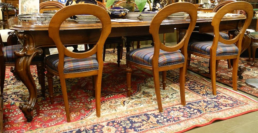 LOT 52 Mid 19th C. Mahogany Dining Table with 3 Leaves & 8 Chairs. Estimate: $250 - $500 Sold For: $325 Auction Date: Tuesday, June 25 2024 at 4:00 PM