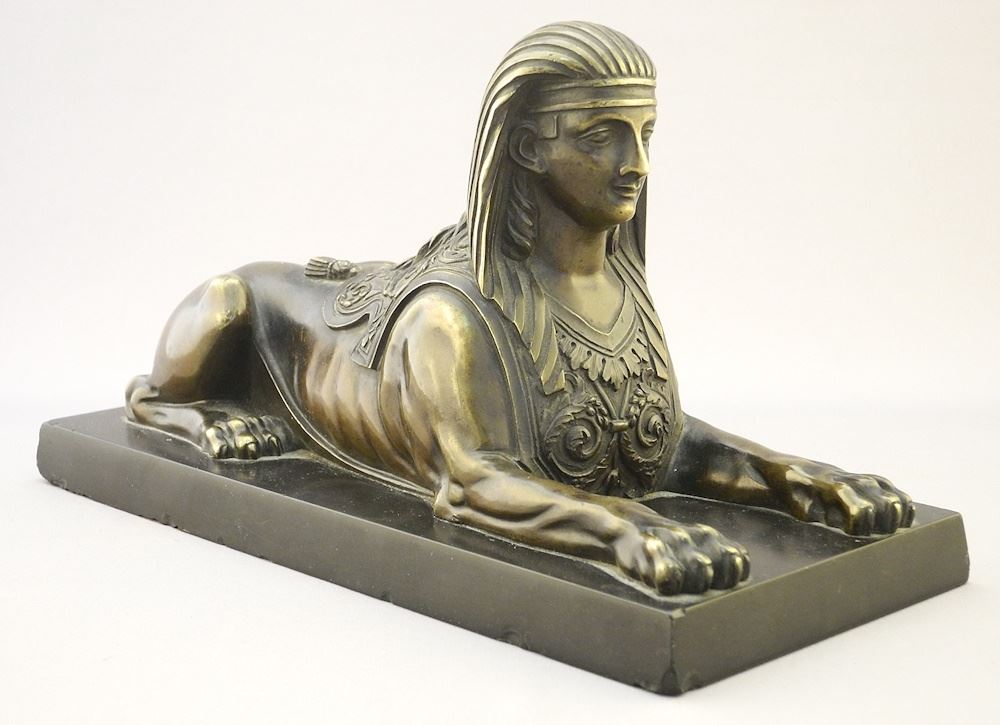 LOT 34 19th C. Bronze Sphynx on Slate Base, 5 1/4" x 9 3/4" x 4 3/8". Estimate: $200 - $300 Sold For: $250 Auction Date: Tuesday, June 25 2024 at 4:00 PM