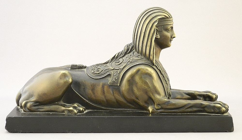 19th C. Bronze Sphynx on Slate Base, 5 1/4" x 9 3/4" x 4 3/8".
