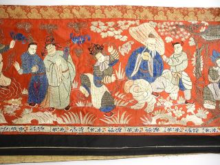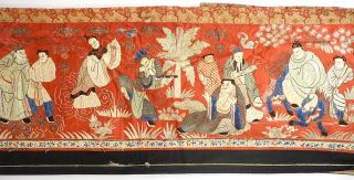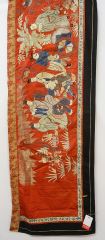 LOT 74 Qing Couched Gold Thread & Silk Embroidery Banner, 14'4" x 1'5". Estimate: $300 - $500 Auction Date: Tuesday, June 25 2024 at 4:00 PM