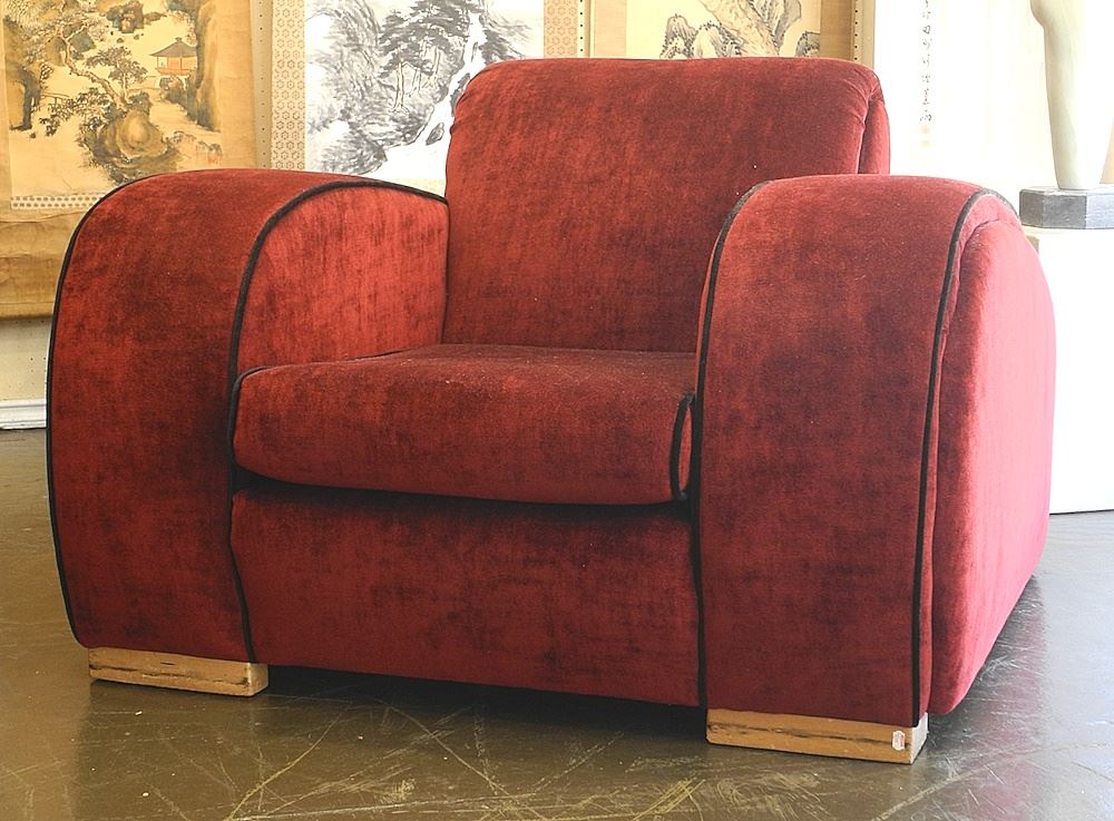 Vintage Art Deco Mohair Club Chair, 44"w.