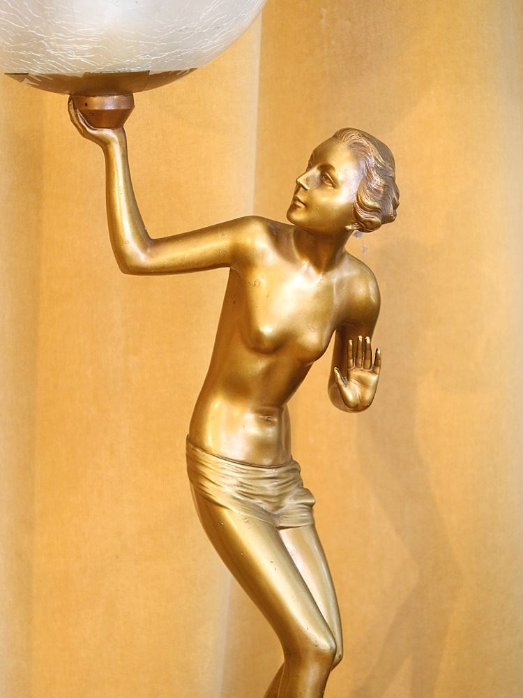 LOT 9 Art Deco Figural Table Lamp Supporting a Globe, 24"h. Estimate: $100 - $200 Sold For: $410 Auction Date: Tuesday, June 25 2024 at 4:00 PM