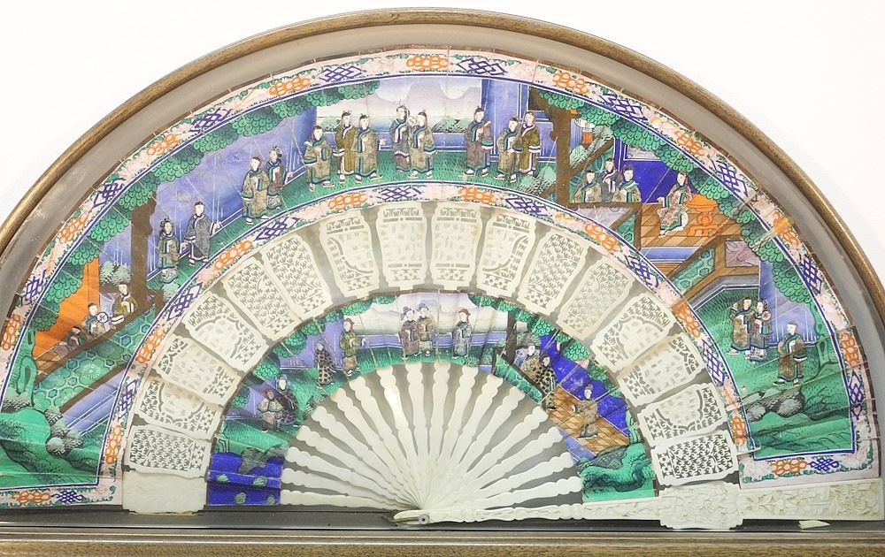 LOT 85 Mid 19th C. Cantonese Fan in Free Standing Shadow Box, 12 1/2" x 24" x 3". Estimate: $150 - $200 Sold For: $325 Auction Date: Tuesday, June 25 2024 at 4:00 PM